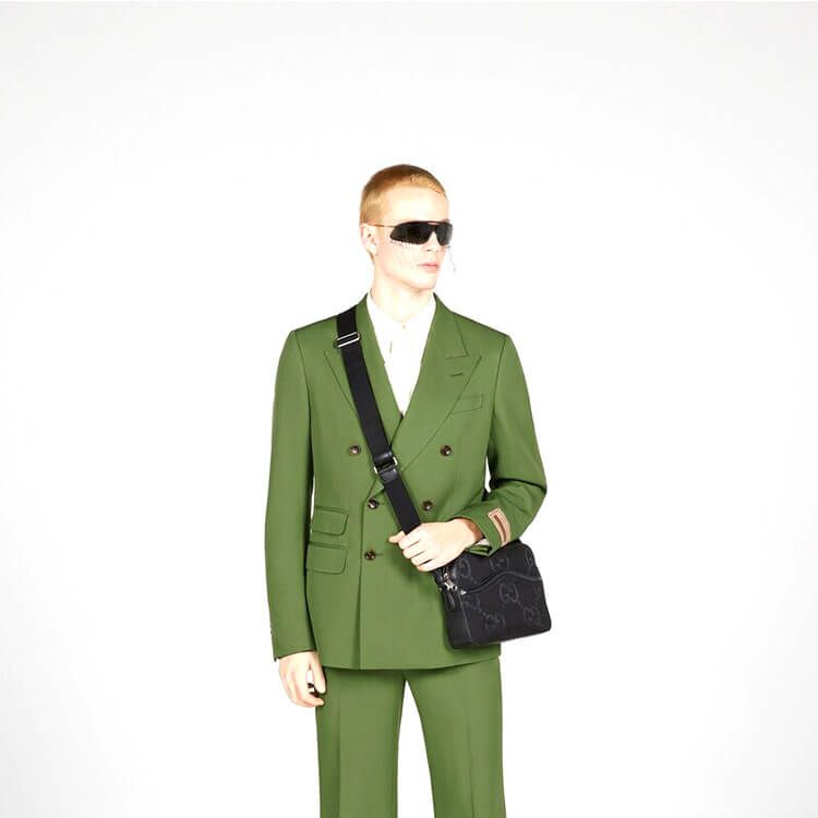 1:1 Mirror Quality Replica Gucci Jumbo GG Messenger Bag Style:675891 FABRP 1000 Black jumbo GG canvas Black leather trim Cotton linen lining Oval leather Interlocking G tag Inside: 1 zip pocket Outside: 1 pocket with magnetic closure Shoulder strap with 64cm drop Zip closure W25.5cm x H20cm x D6cm
