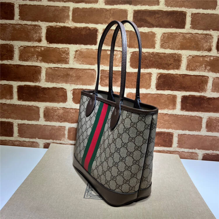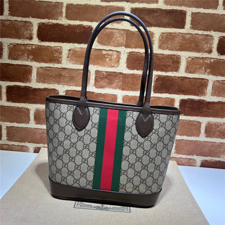 1:1 Mirror QualityReplica Gucci Ophidia Small Tote BagStyle:726762 2AAAY 9151Beige and ebony GG Supreme canvasBrown leather trimGreen and red WebCotton linen liningHandle with 19cm dropWeight: 364gr. approximatelyW25cm x H22cm x D12cm