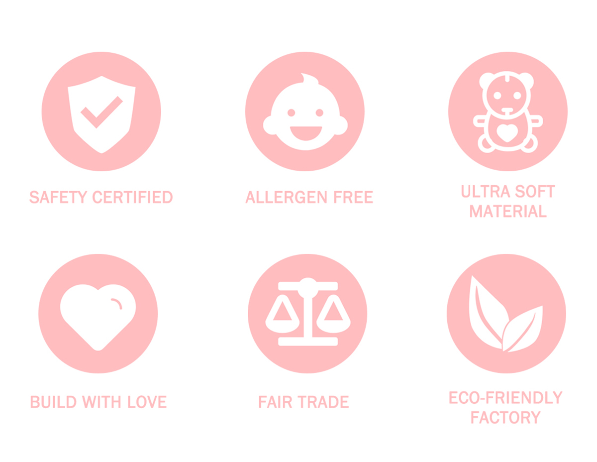 A messy house means happy kids. As parents, we understand very well that kids tend to be messy. The hygiene of baby's toys is one of the most important things for mothers, therefore we designed our products to be completely machine washable to save you the hassles. We strategically designed the crossbody bag’s height to be 21 cm, which is the perfect size for babies to carry when they go to kindergarten, primary school, or out for any outdoor activity.