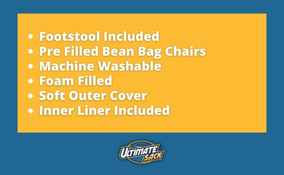 The versatility of the Ultimate Sack foam-filled bean bag chair allows for a great alternative to sofas, recliners, and love seats. Whether you are looking for a place to lounge, play games, read, study, work, or watch the game, the Ultimate Sack is the answer.